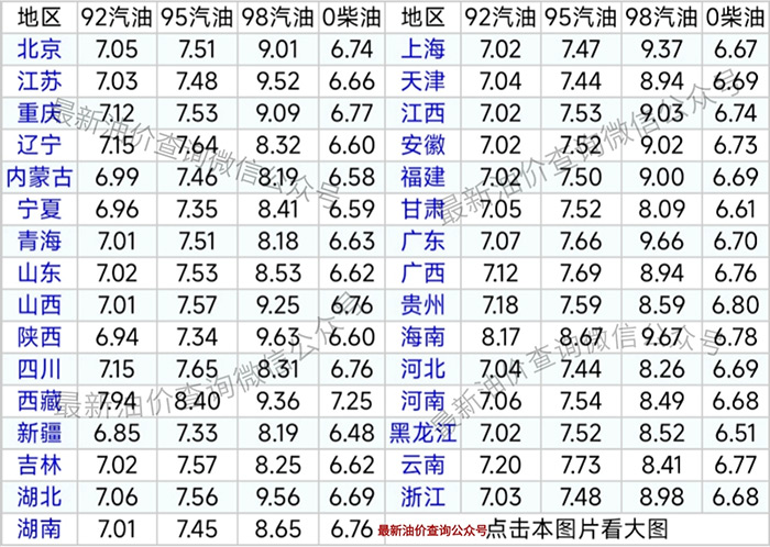 備注:云南、陜西、四川、遼寧、新疆、青海、西藏,貴州、內(nèi)蒙古、黑龍江油價(jià)沒有實(shí)現(xiàn)統(tǒng)一價(jià)格,